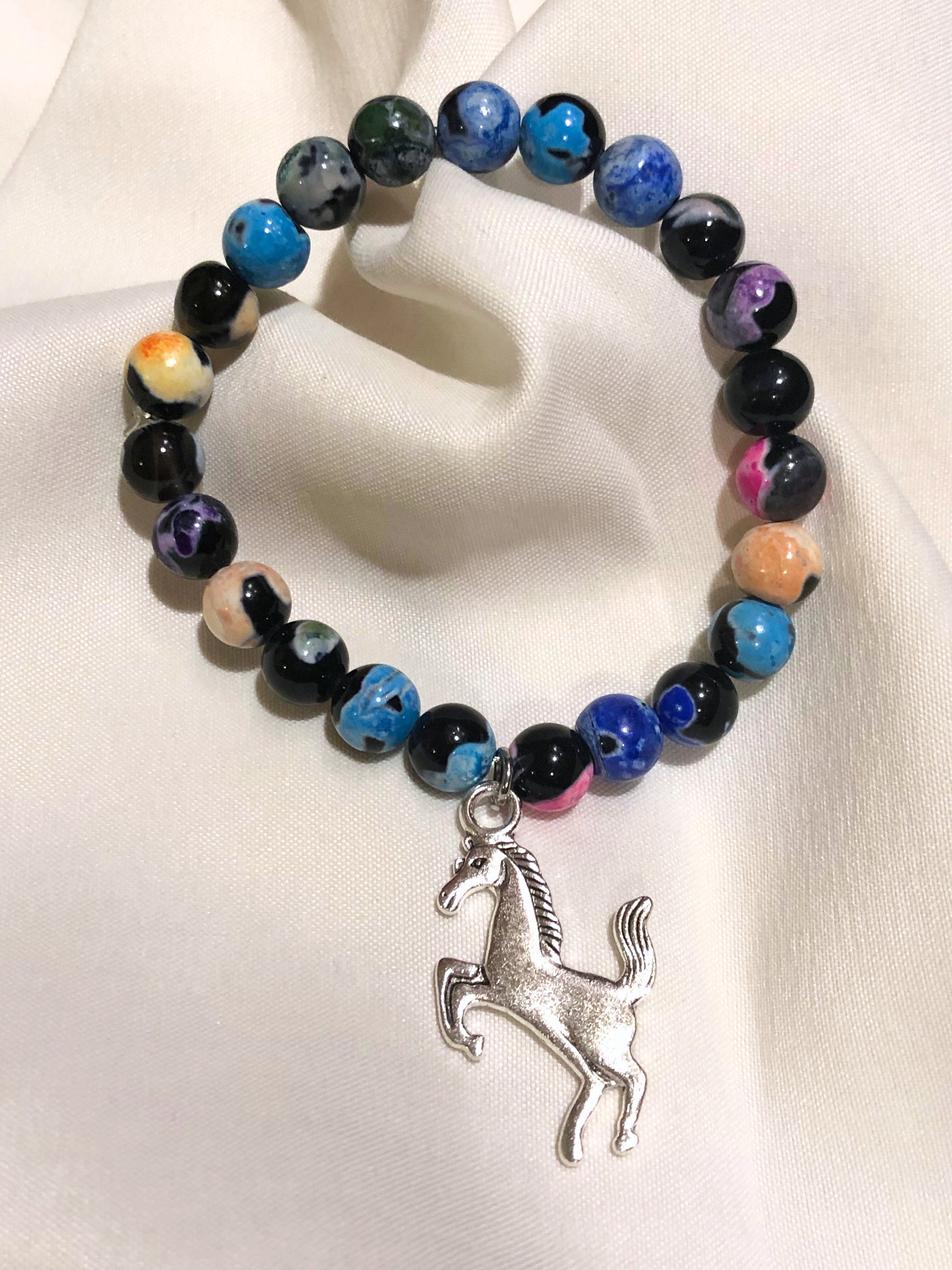 Multicolor 2026 Year of the Horse 8 mm beaded bracelet with horse charm