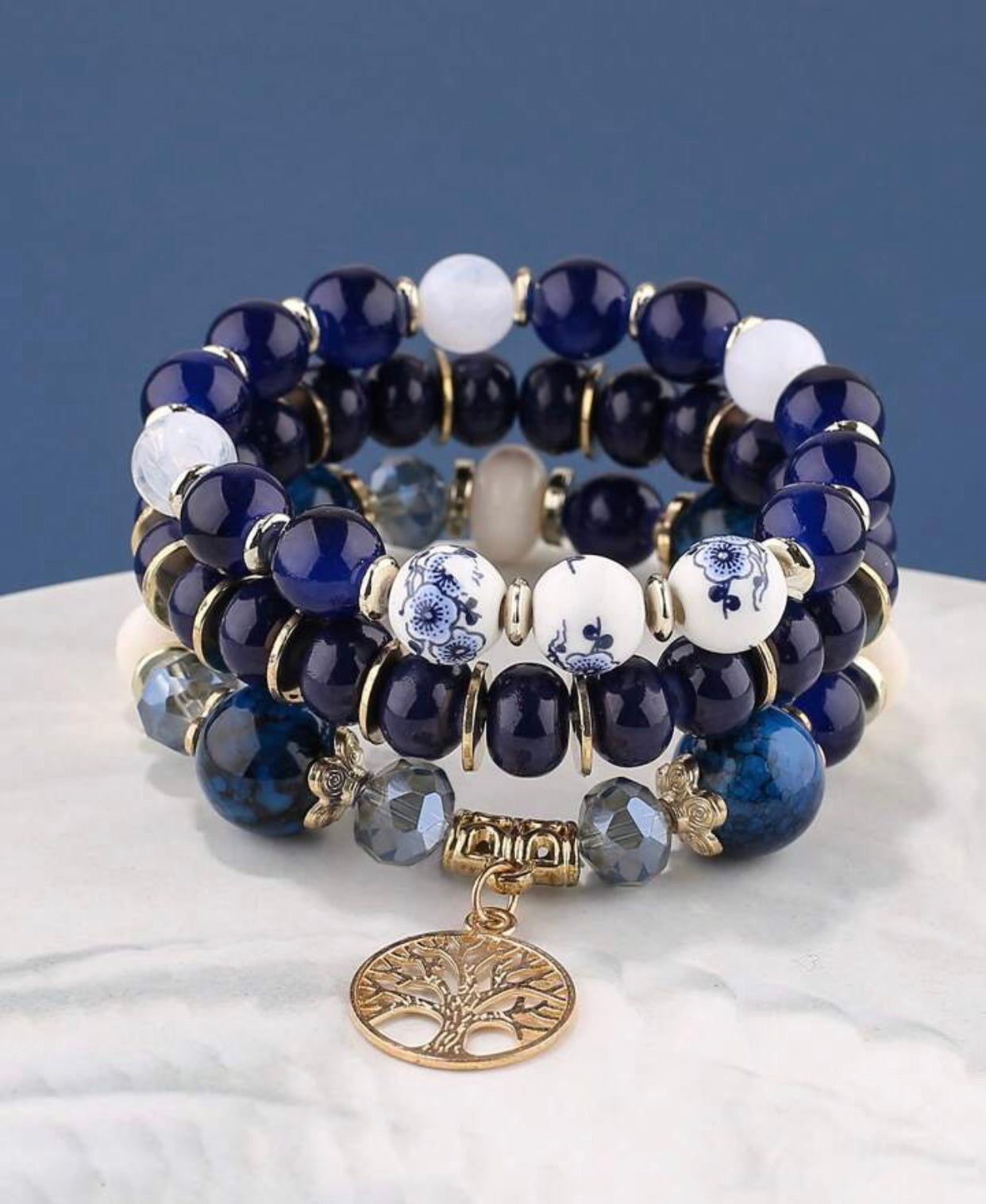 Ocean Blue bracelet with tree of life charm. Brings energy, strength, emotional peace, expression, and motivation.